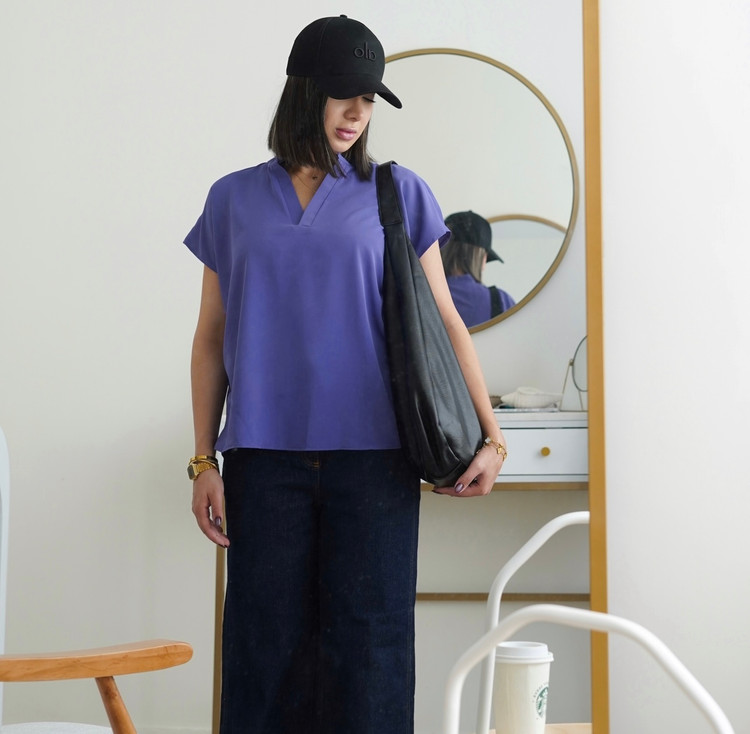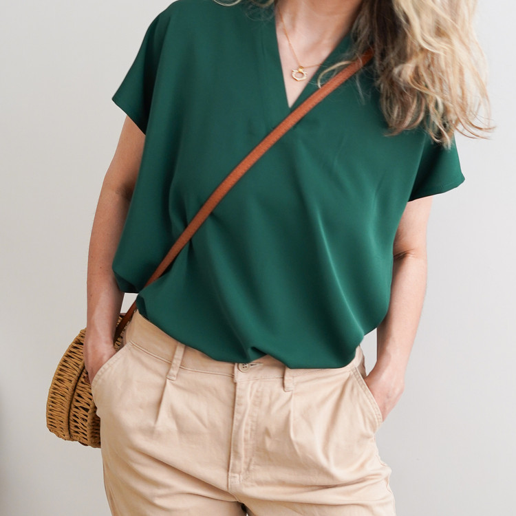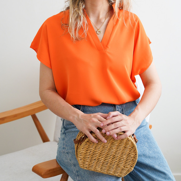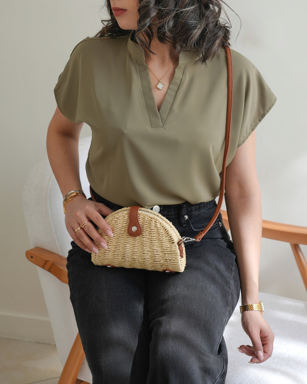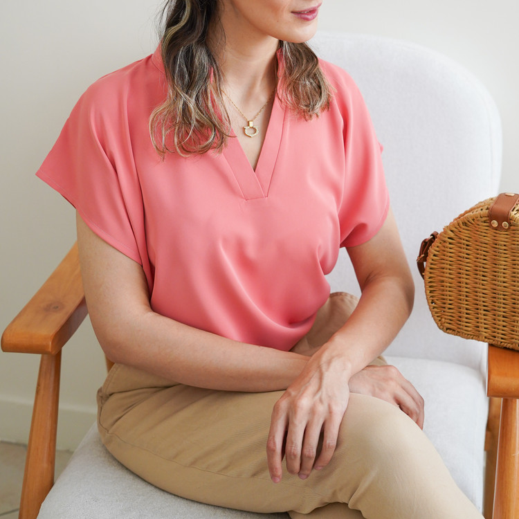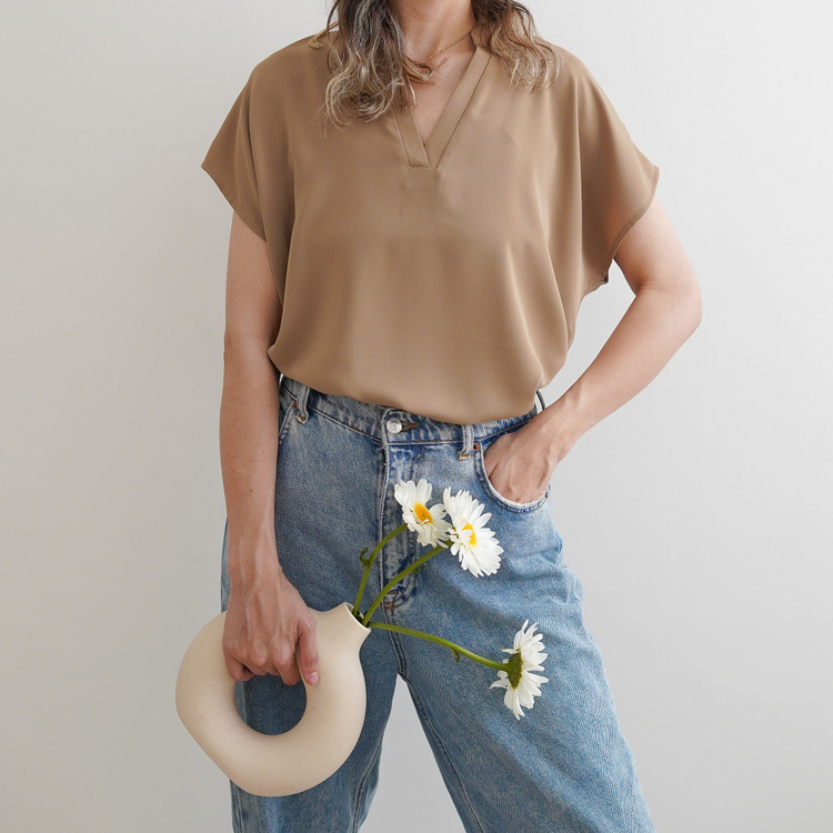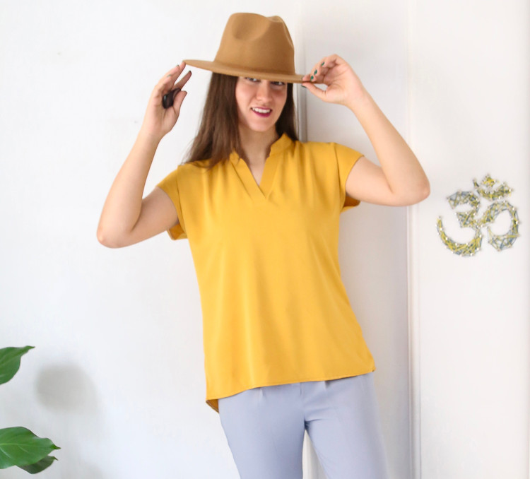 تاپ یقه هفت زنانه نازین مدل آستین کوتاه جنس مصری