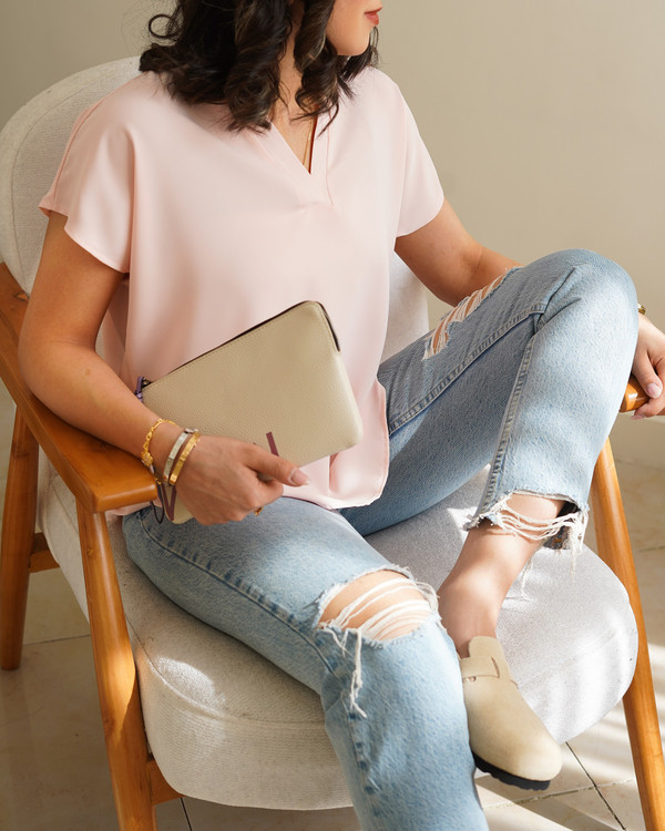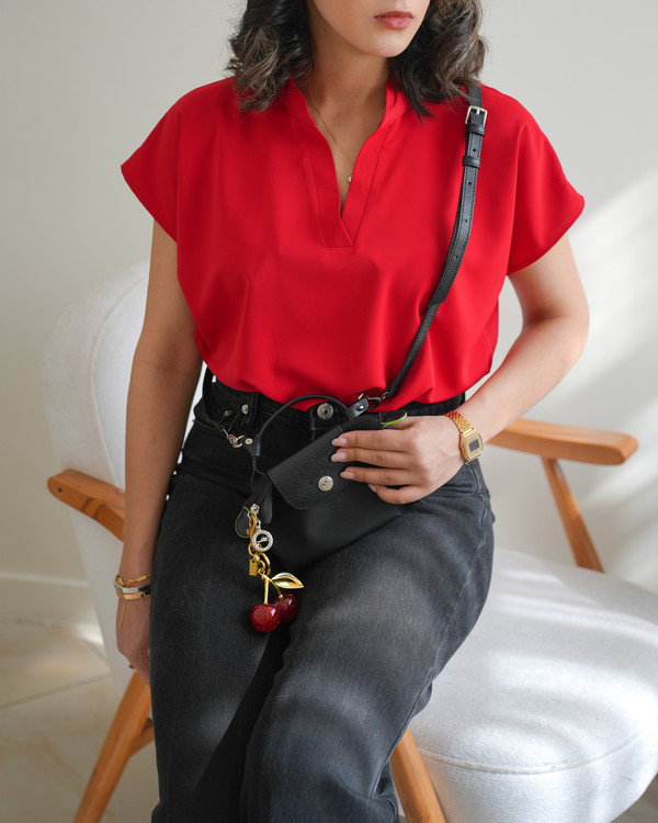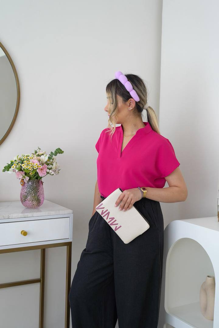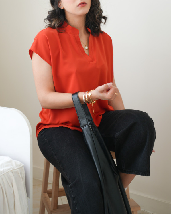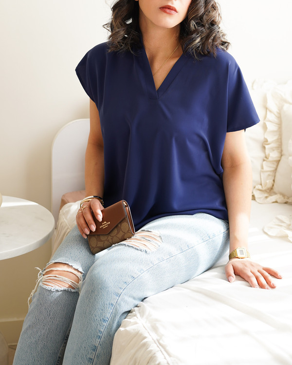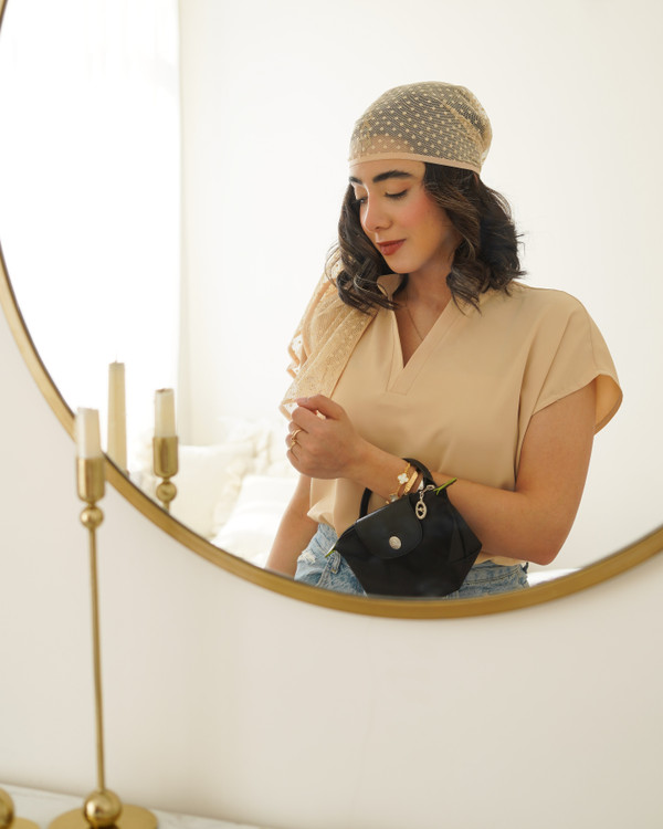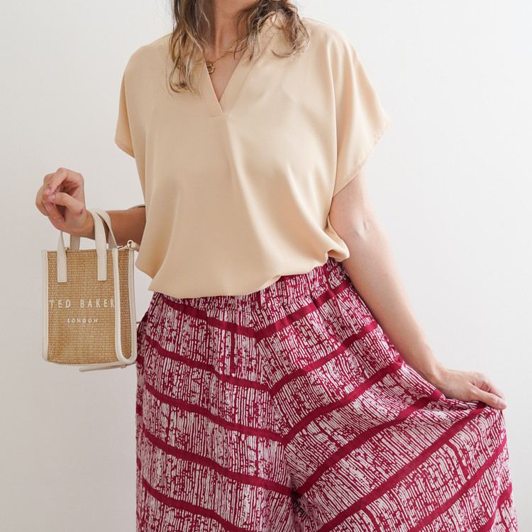 تاپ یقه هفت زنانه نازین مدل آستین کوتاه جنس مصری