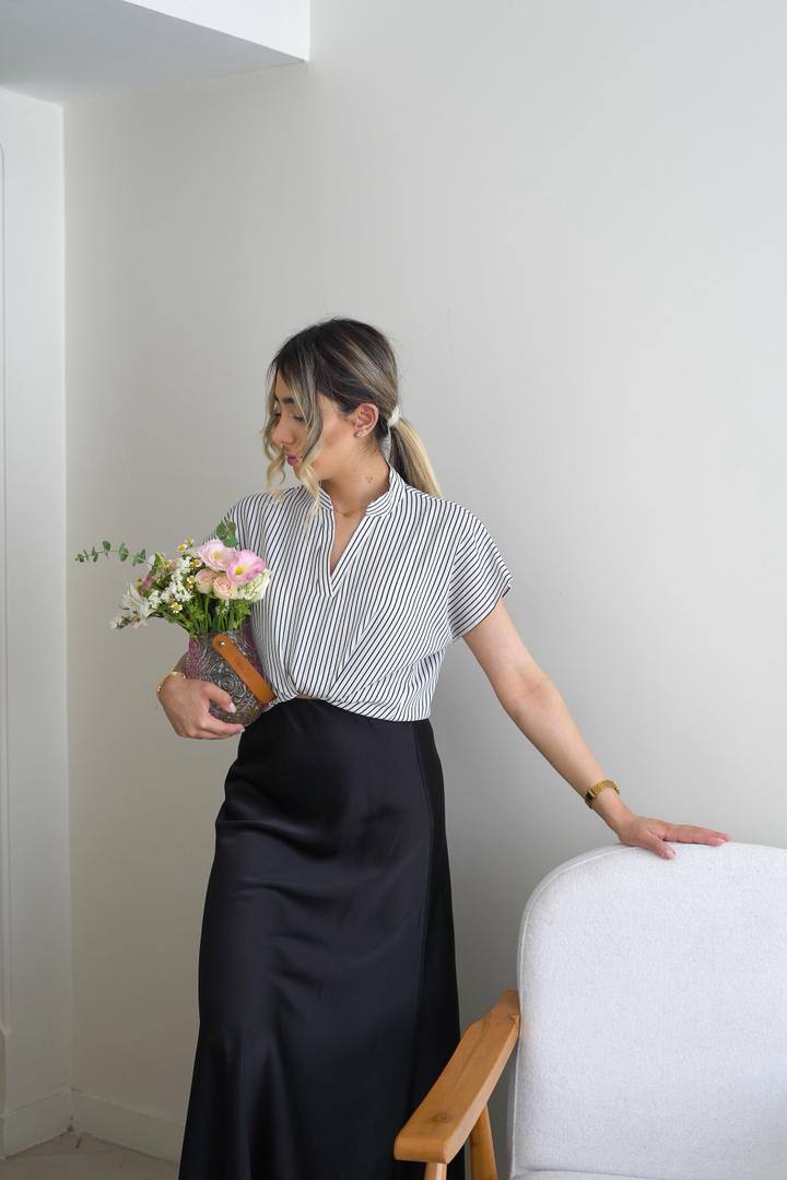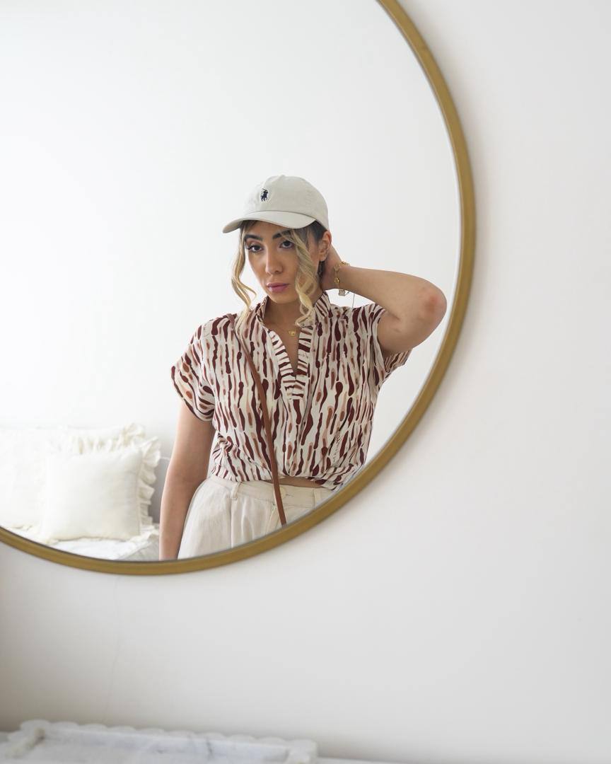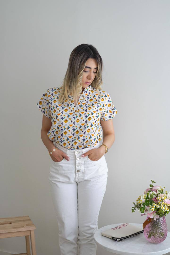 تاپ یقه هفت طرحدار استین کوتاه جنس مصری