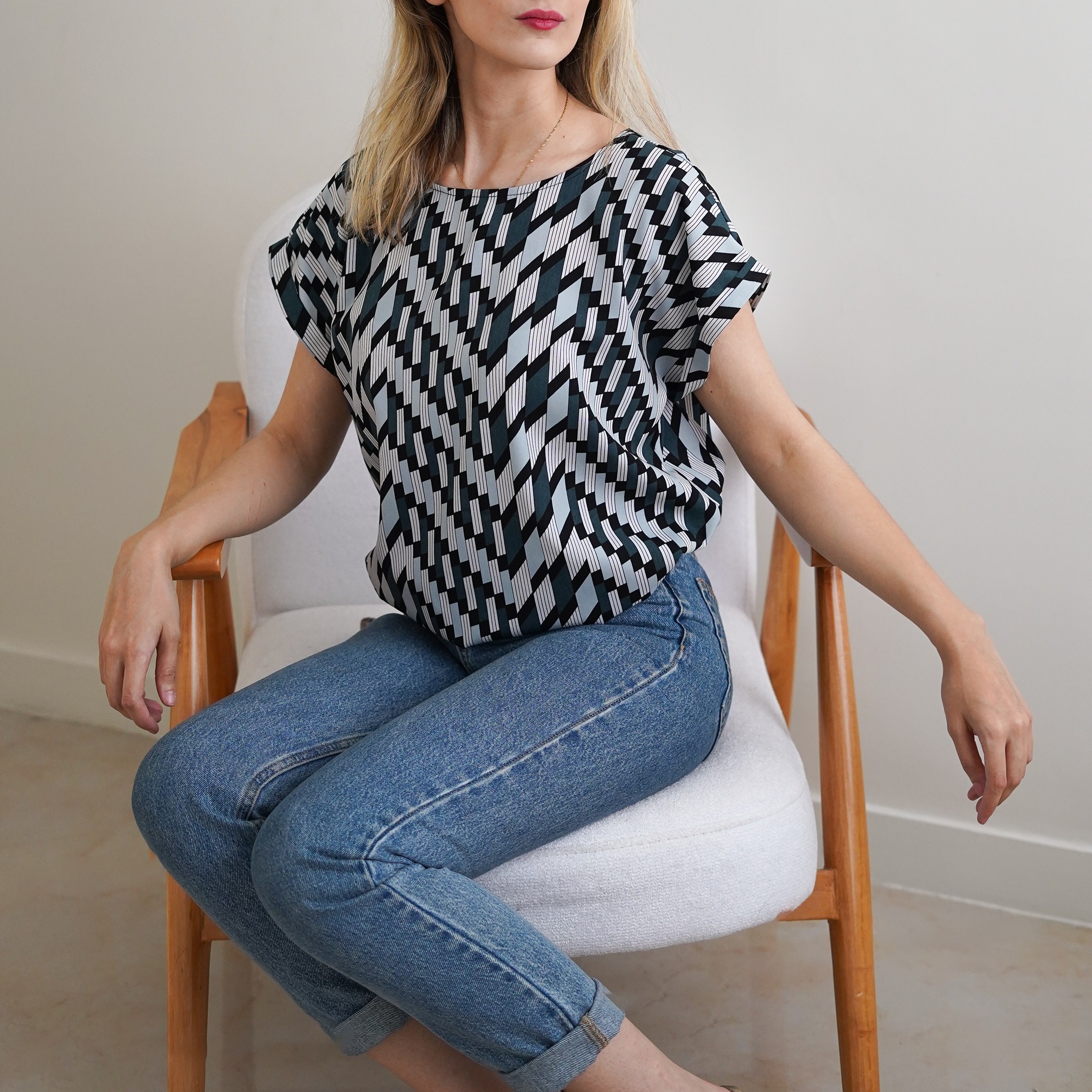 تاپ یقه هفت طرحدار استین کوتاه جنس مصریناموجود